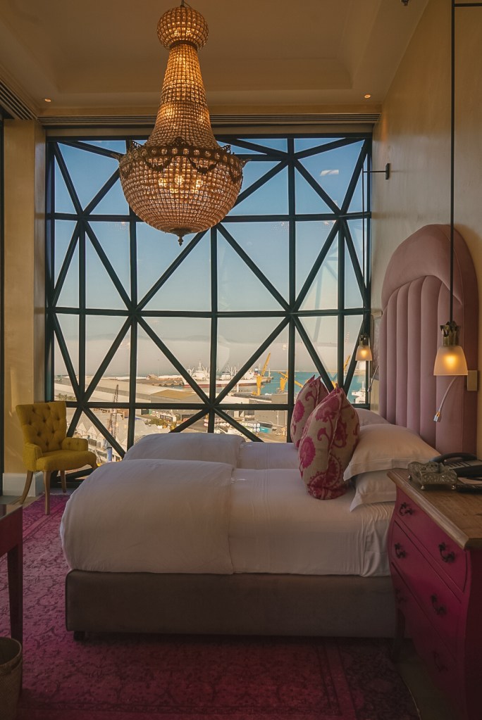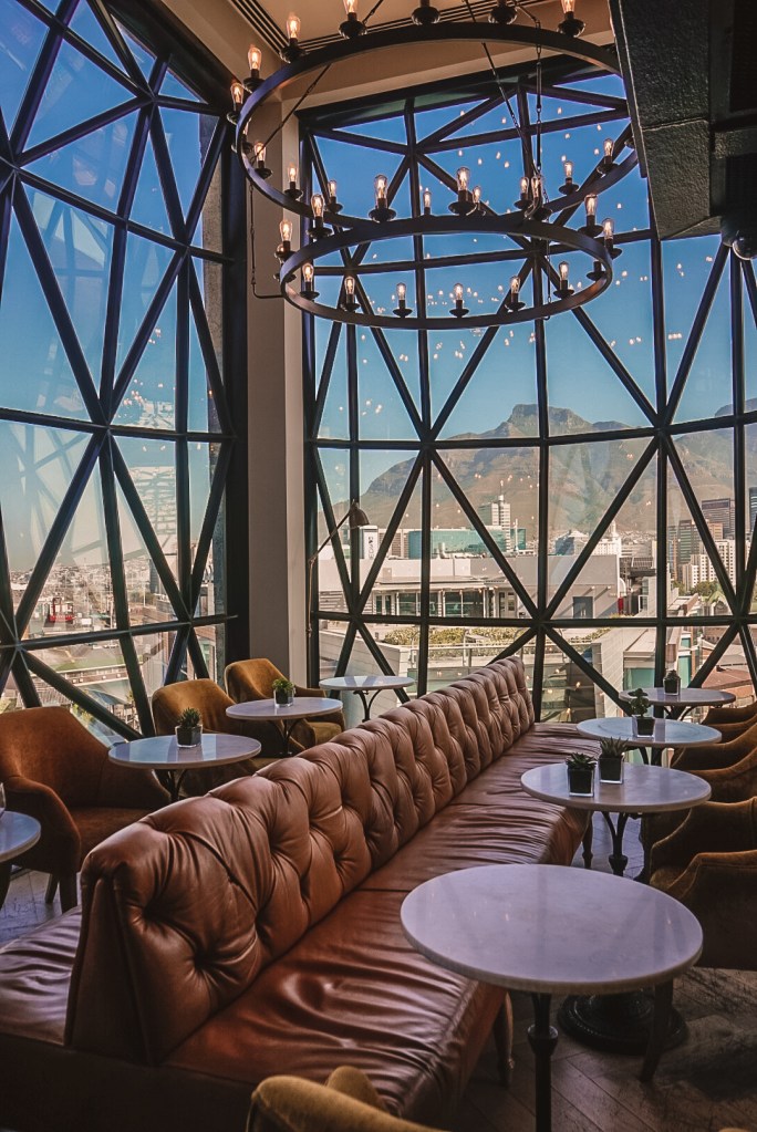 Featuring over 100 pillared, bulging glass windows, the exterior of the hotel uses architectural mastery to portray a lantern like monument at night. The incredible hotel has 360-degree sweeping views over the V&A Waterfront, Table Mountain and out to the bay.