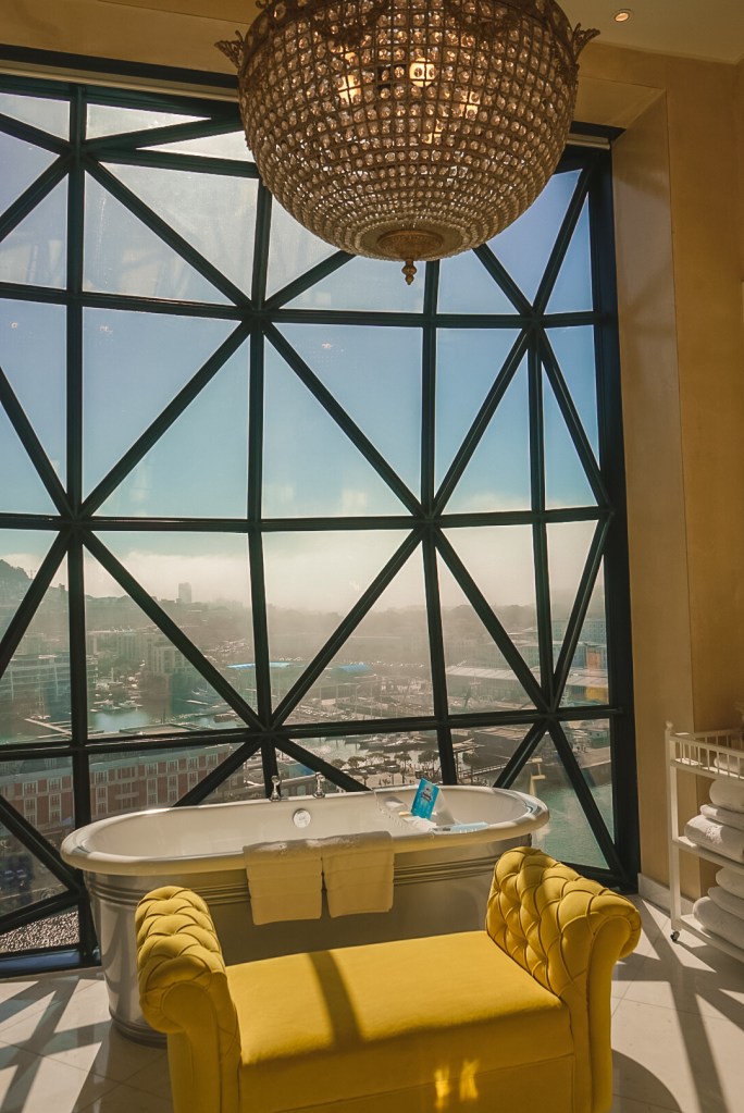 With stunning views of Table Mountain in my mind, and a belly full of some of Cape Town’s finest food and wine there seemed no better way to end the day than with a bath overlooking the night lights of Cape Town through the whimsical bathroom windows.